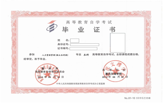 (高等教育自学考试毕业证书样本)