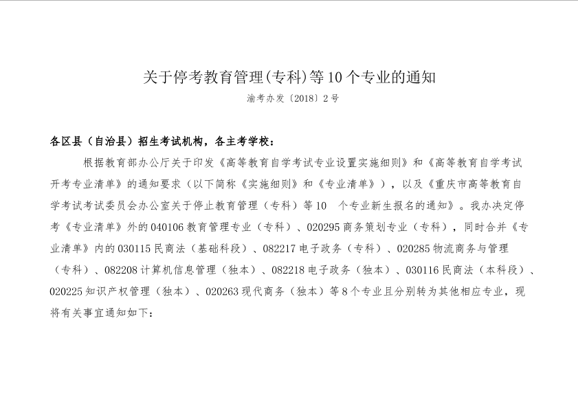 关于停考教育管理(专科)等10个专业的通知