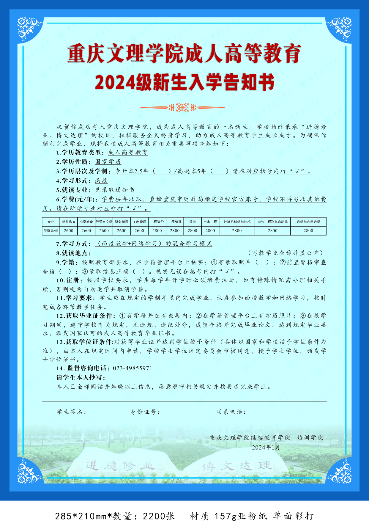 1.2024级新生根据教学点(含校本部)学籍负责人或辅导员的通知,到所在教学点领取录取通知书、填写新生入学告知书(见附件1)、核对新生信息和注册表并确认签字。