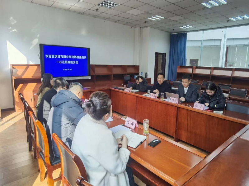 2024年2月29日上午,重庆城市职业公司太阳成集团tyc33455cc经理杨贵强一行到校展开合作交流,公司白成良书记及学历教育和办公室相关人员参与,双方就合作事宜进行交流,希望达成共识、建立良好合作关系,会议由白成良书记主持。